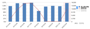 横ばいです。売上自体は100億以上あって