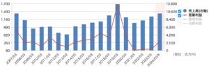 売上は不安定です。短い期間では右肩上がりの時期もありますね。