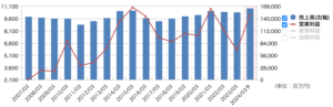 株価も不安定ですね、、2022年に大きく下げて、2023年に大きく戻してます。