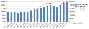 株価は、長期的には右肩上がりで2022年以降急上昇してます。