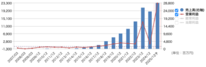 2016年まで赤字ですが、そこから売上も利益も急上昇してます