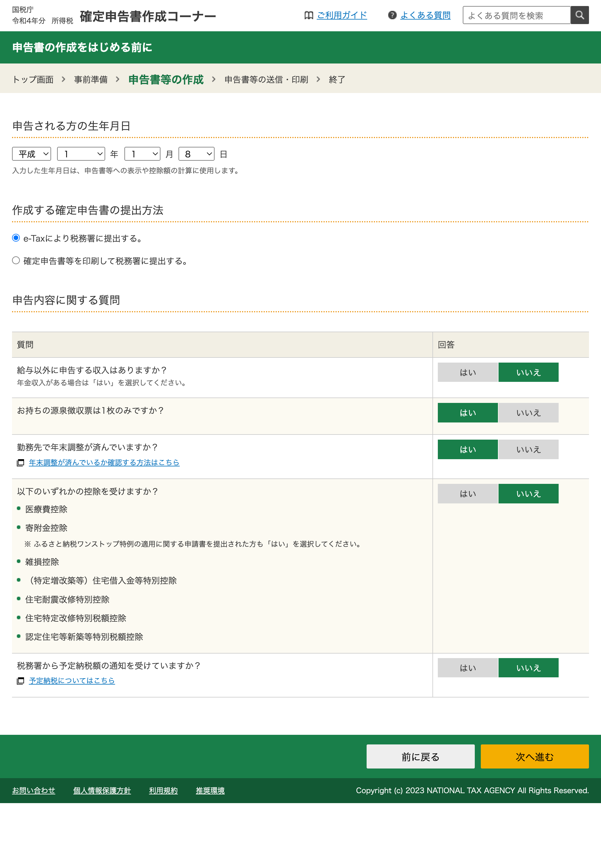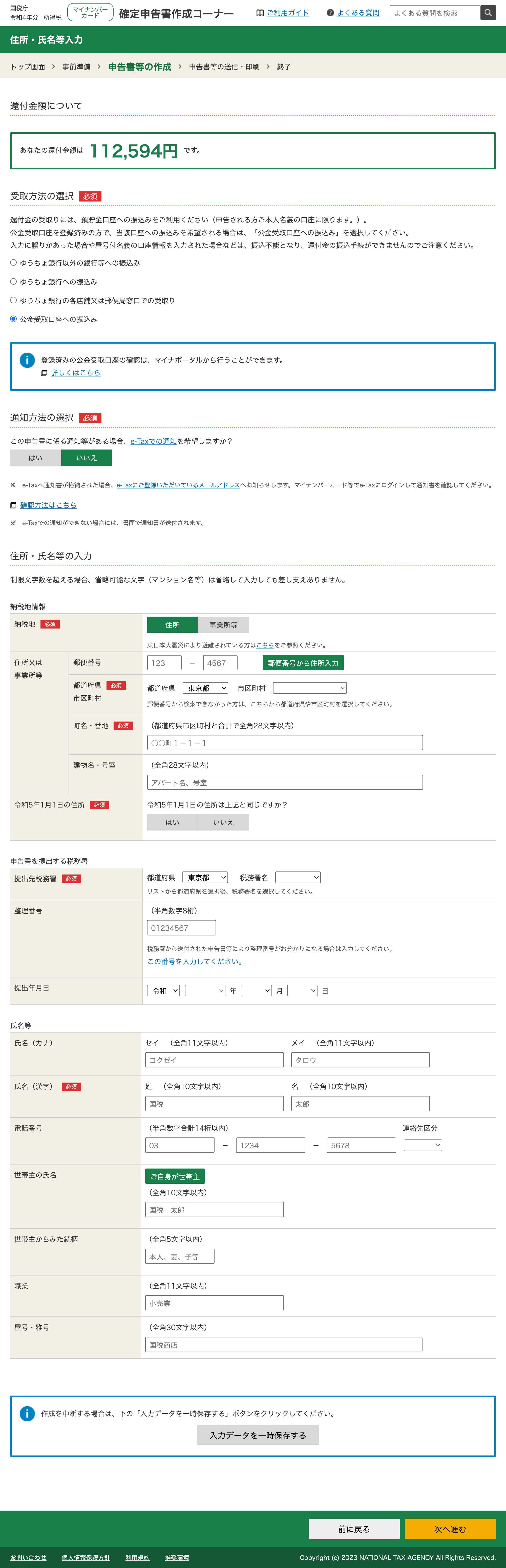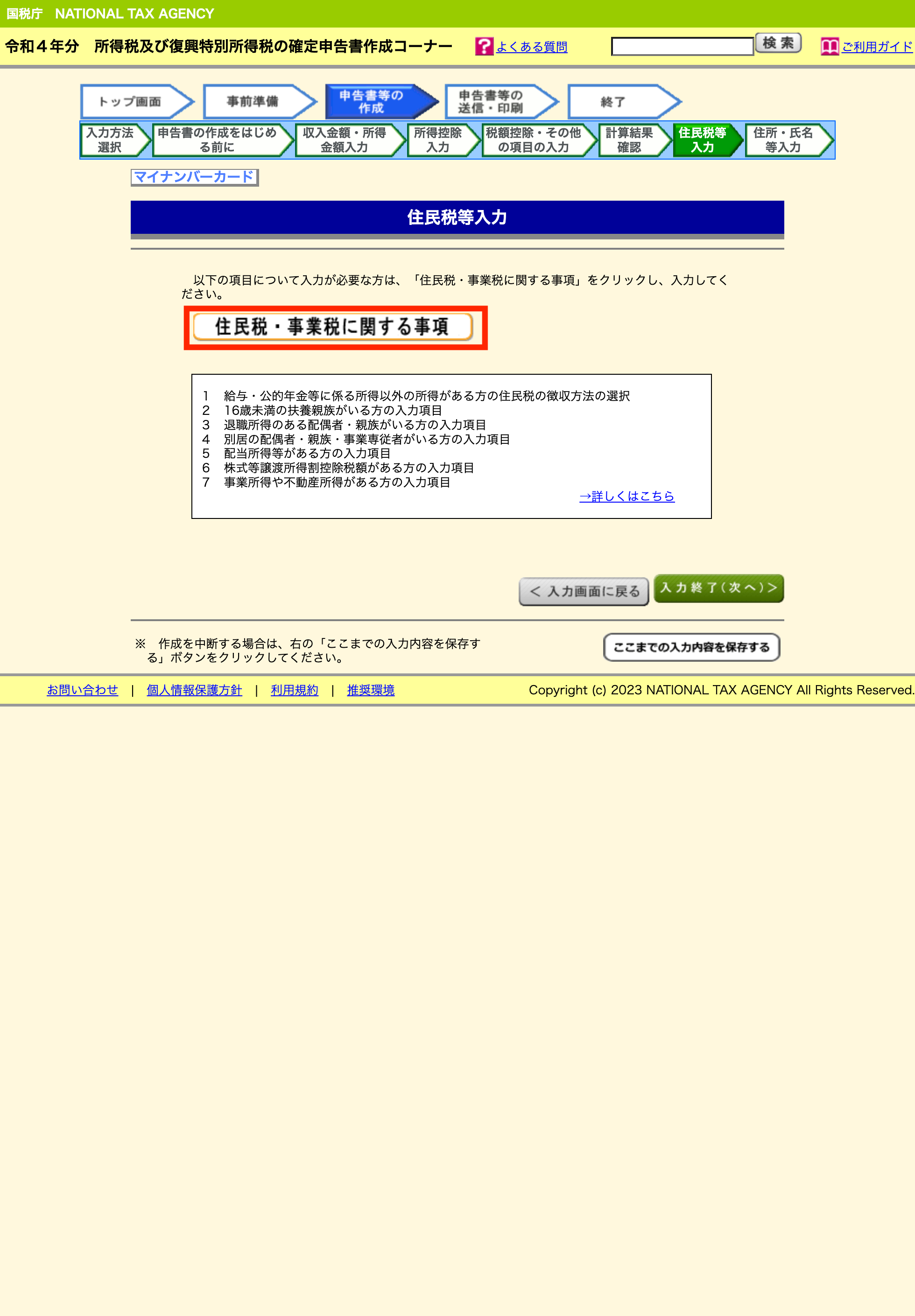 それでは国税庁確定申告書作成コーナーの画像とともに説明していきます。