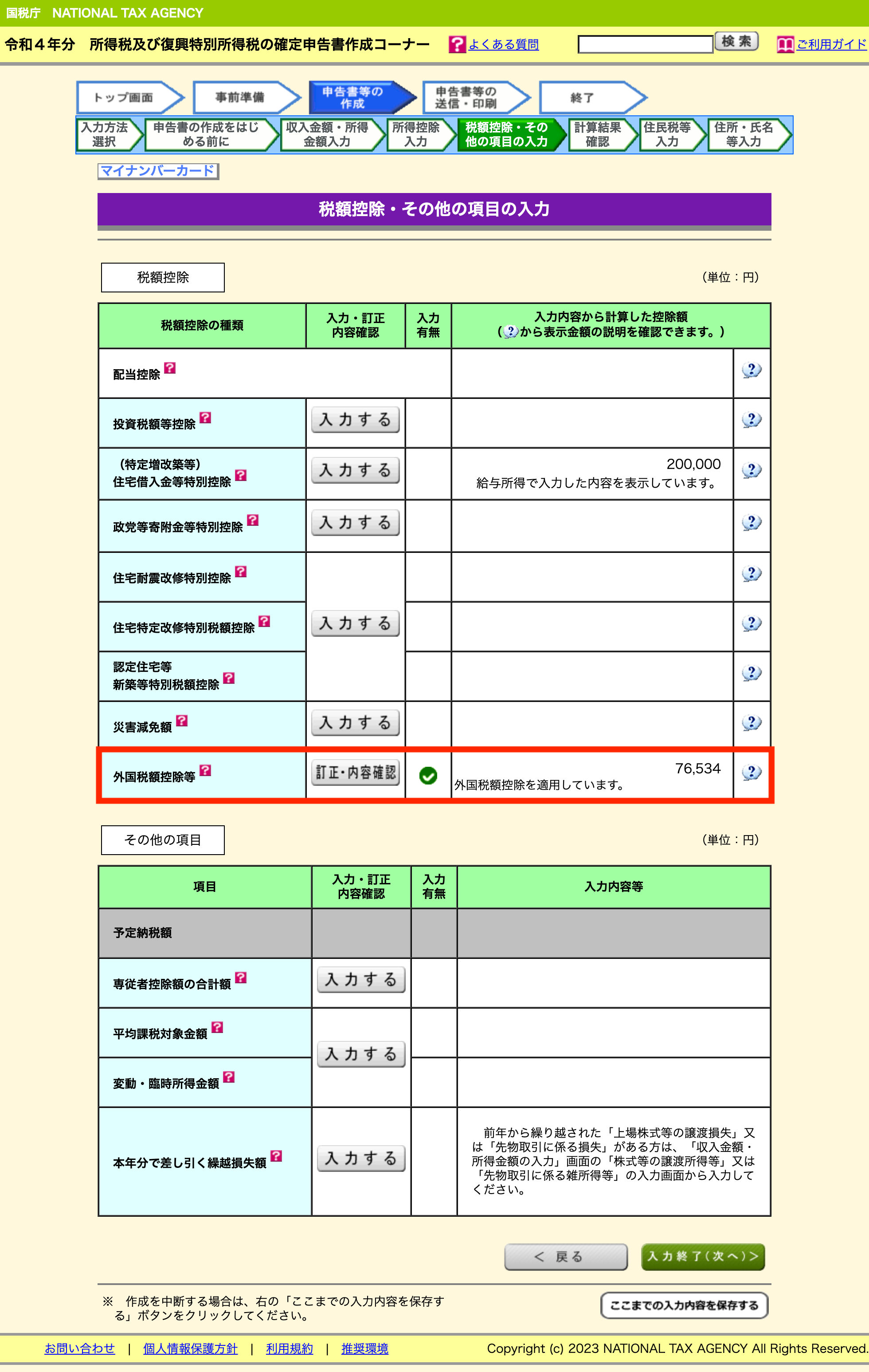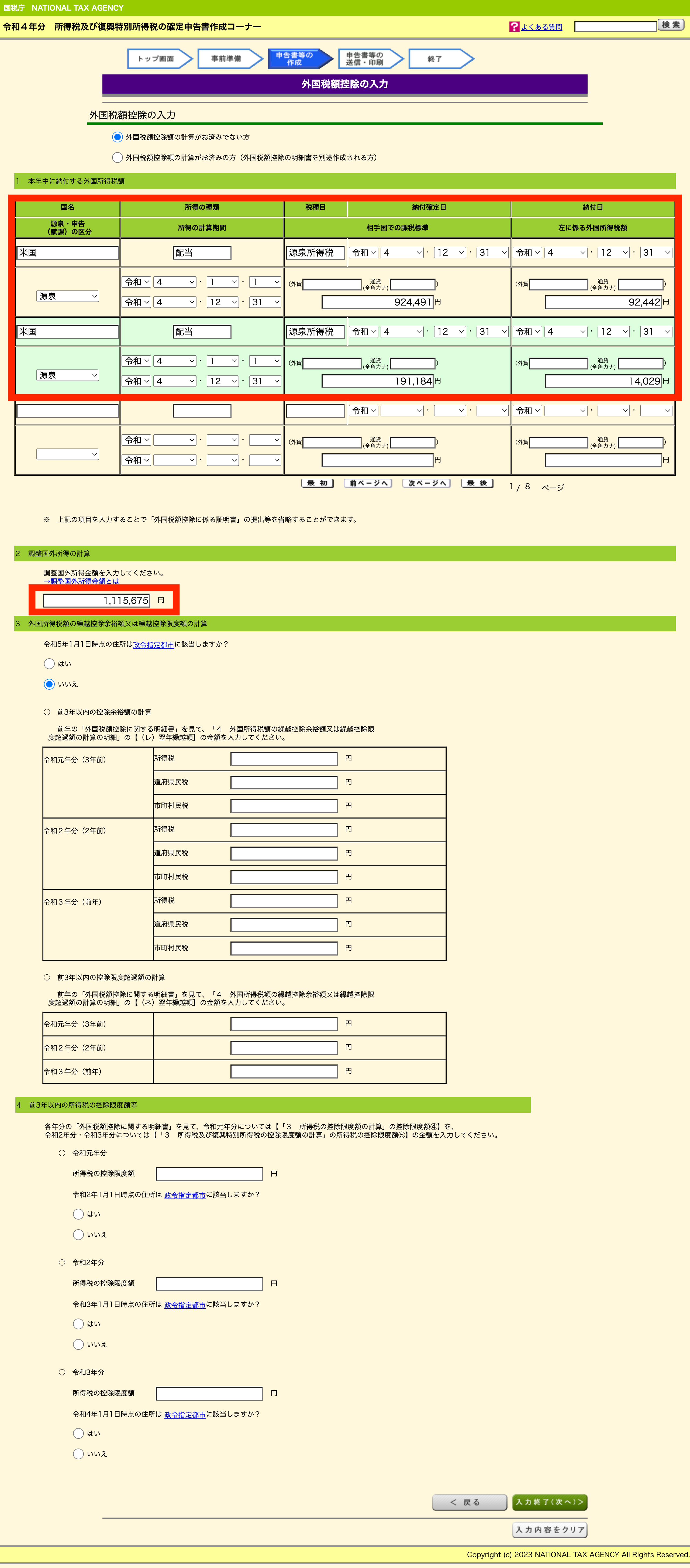 赤枠の調整国外所得金額に「相手国の課税標準」の合計額を忘れず入力しましょう。